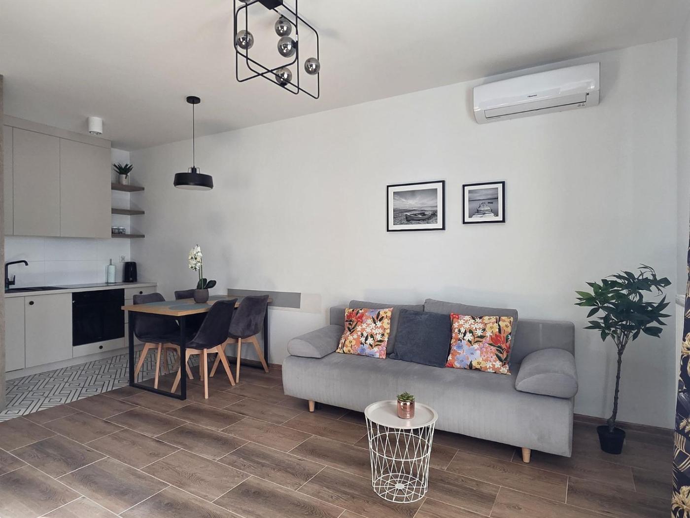 Apartament z 1 sypialnią. Boasting a private entrance, this air-conditioned apartment comes with 1 living room, 1 separate bedroom and 1 bathroom with a shower and a hairdryer. Guests can make meals in the kitchenette that features a stovetop, a refrigerator, a dishwasher and kitchenware. Featuring a balcony with ancourtyard view, this apartment also features a washing machine and a flat-screen TV with cable channels. The unit has 2 beds. Apartament - 4 osobowy. Powierzchnia pokoju ok.: 35 mkw.