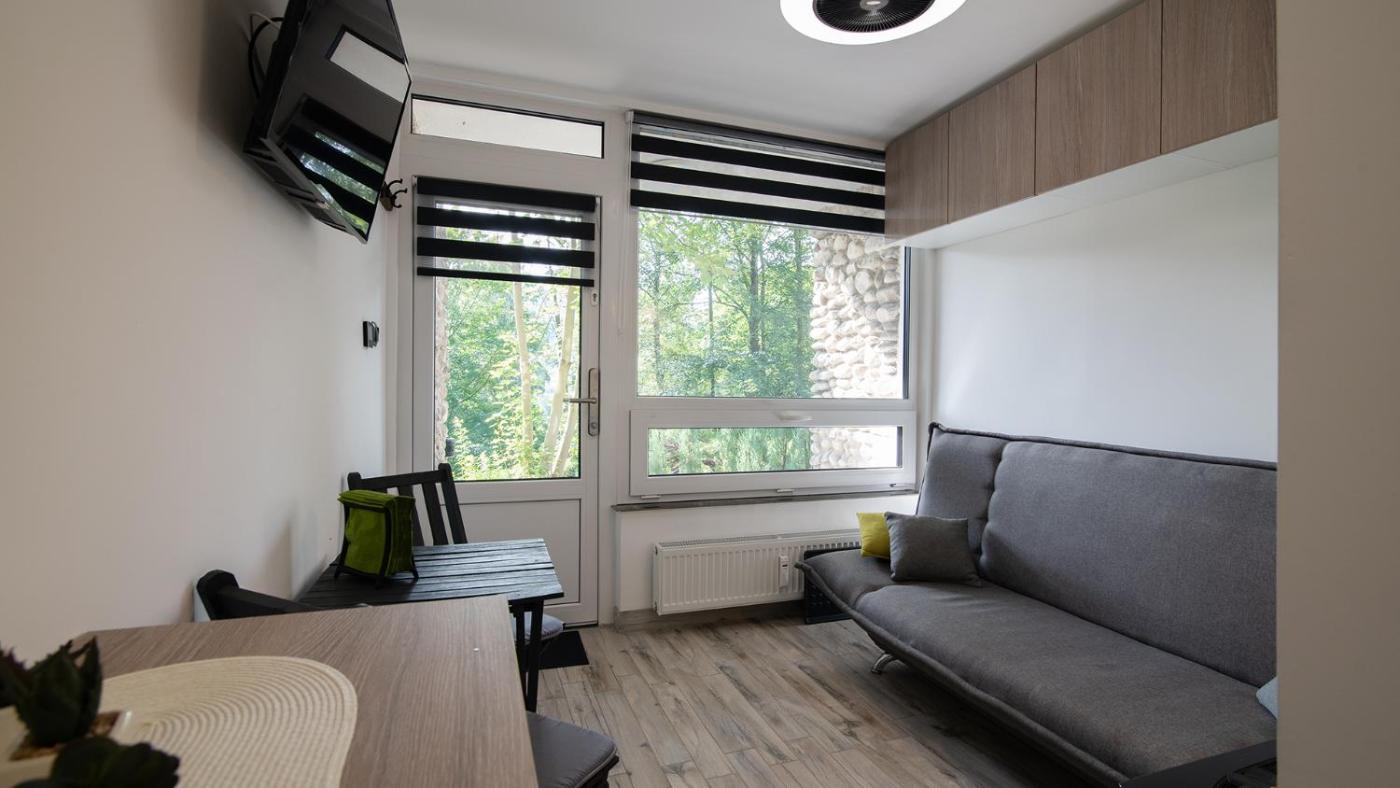 Apartament z 1 sypialnią. Featuring a private entrance, this apartment also consists of 1 bedroom, a seating area and 1 bathroom with a shower and a hairdryer. The fully equipped kitchenette features a stovetop, a refrigerator, kitchenware and a toaster. Boasting a terrace with garden views, this apartment also provides a coffee machine and a flat-screen TV with streaming services. The unit offers 1 bed. Apartament - 2 osobowy. Powierzchnia pokoju ok.: 13 mkw.